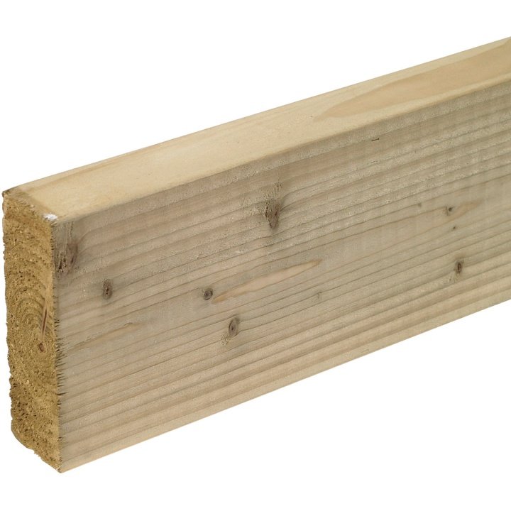 Please note: our sawn treated timber sizes are nominal and have smaller finished sizes. The finished size of this sawn timber is 145mm x 45mm. Available in lengths between 2.4m-4.8m.